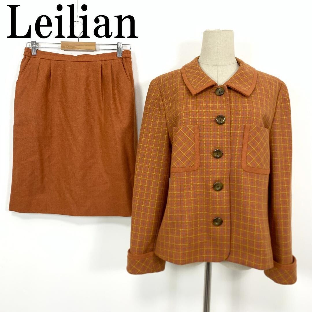- LA5696 Leilian レリアン スカート セットアップ カジュアル チェック ボタンジャケット ウエストゴム入りスカートオレンジ系 13