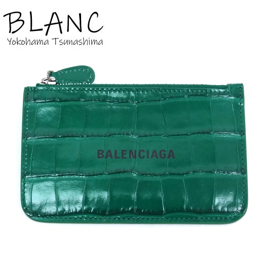 - バレンシアガ コインカードホルダー クロコ型押し グリーン 緑 637130 BALENCIAGA 横浜BLANC
