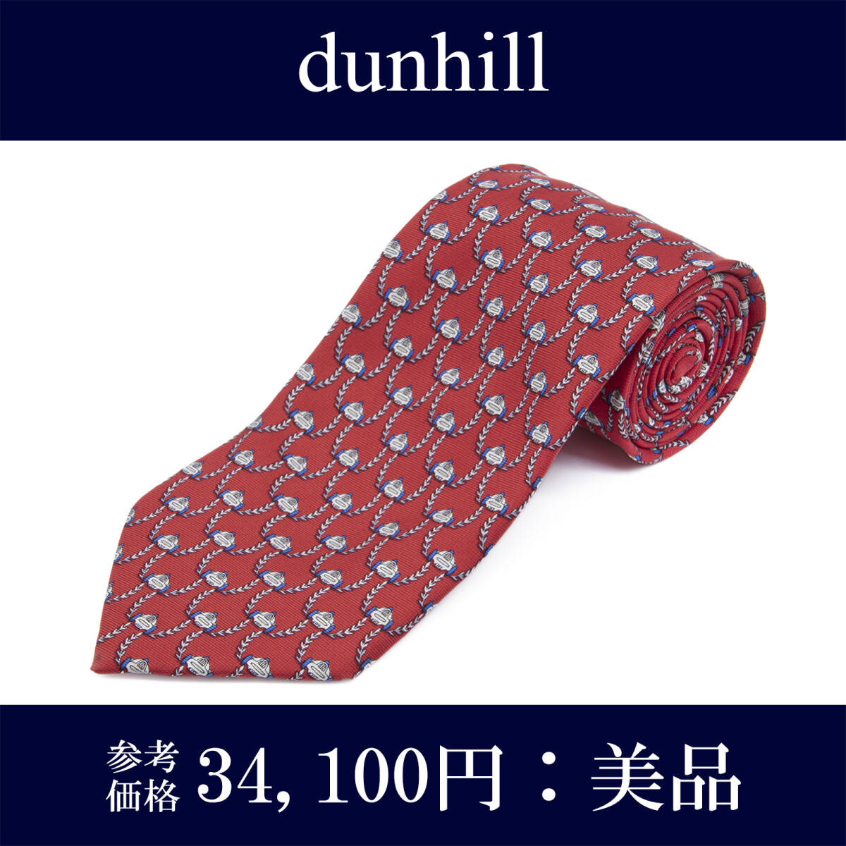 - 送料無料 ダンヒル ネクタイ レギュラータイ シルク 赤 レッド グレー 青 ブルー ビジネス カジュアル 総柄 ブランド イタリア製 綺麗 N359