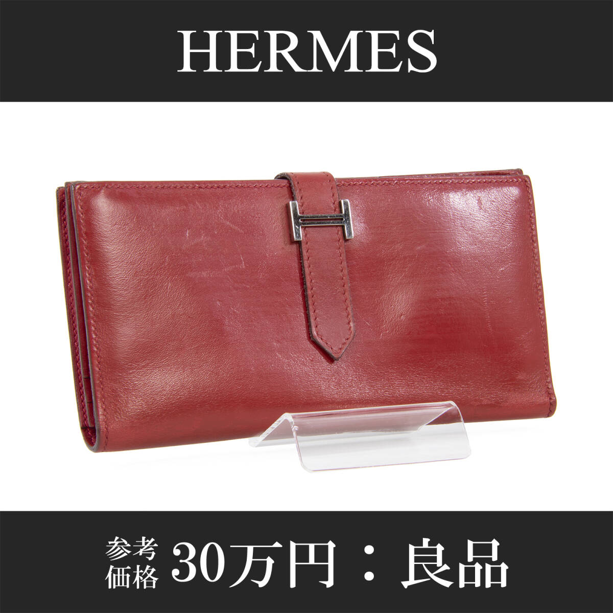- 本物 送料無料 エルメス 二つ折り 長財布 レディース ボックスカーフ ベアン スフレ ルージュガランス 赤 レッド 珍しい シルバー金具 T055
