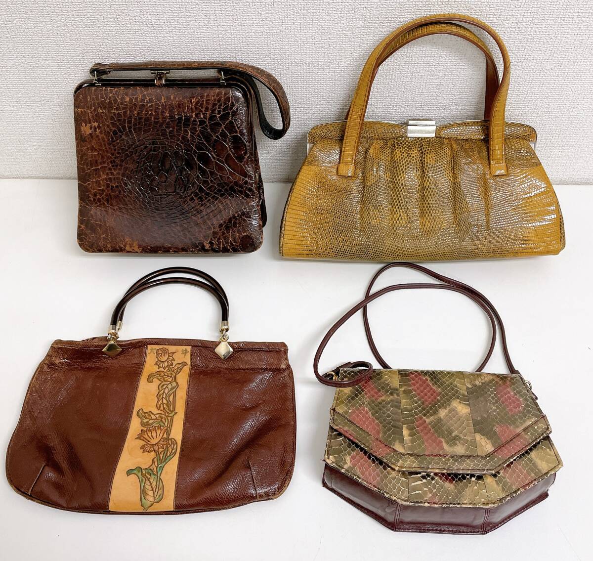 - 【ハンドバッグ まとめて4点】レザー/ヘビ革/クロコダイル/ビンテージ/レトロ/ファッション/バッグ/A72-237