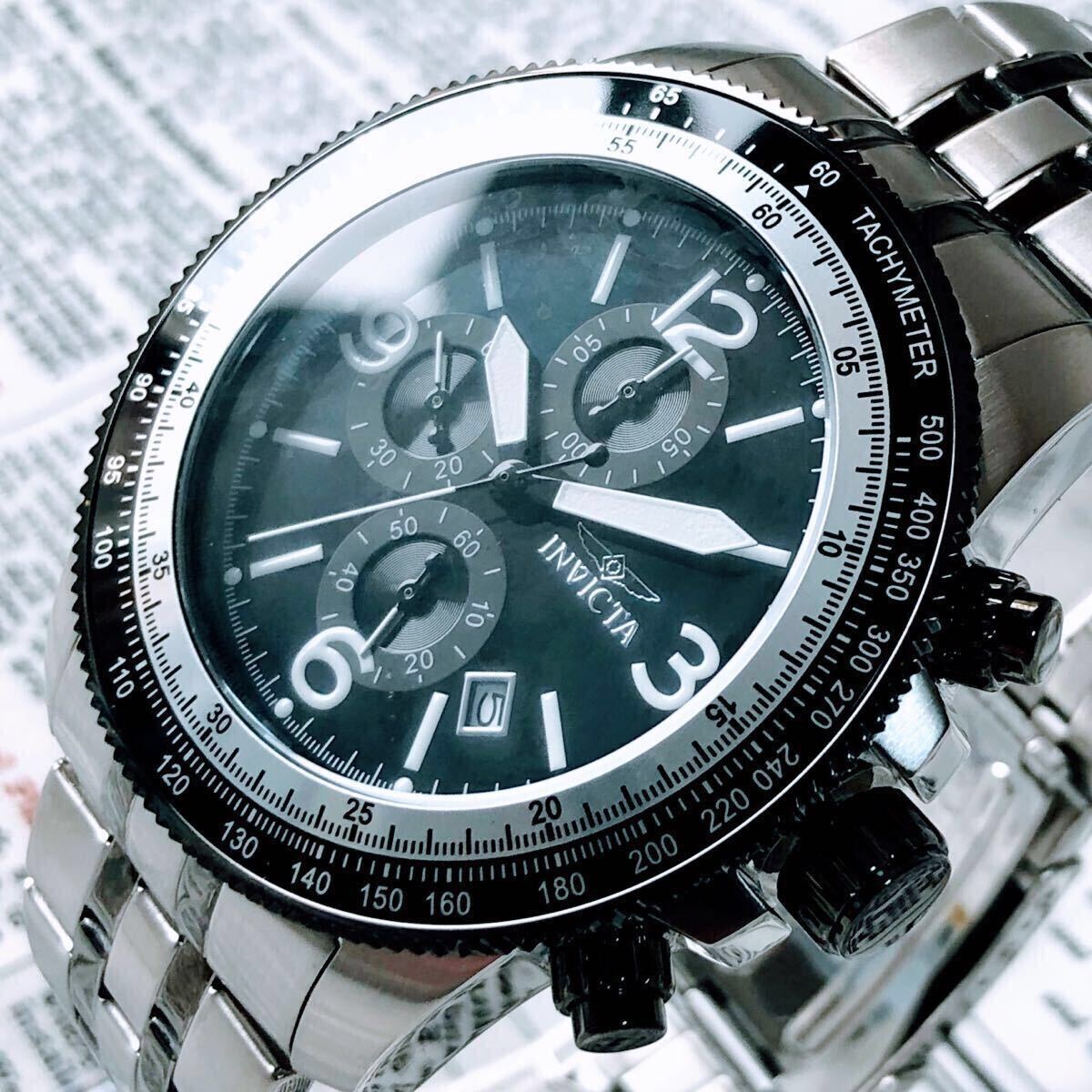 - #3565【大人のお洒落】メンズ 腕時計 インビクタ Invicta クォーツ 黒文字盤 Quartz 動作良好 ブラック 防水 インヴィクタ クォーツ 日付