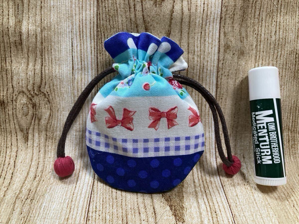 - ハンドメイド ミニミニ巾着 巾着袋 花束 リボン 丸底 ハンドメイド ループエンド付き
