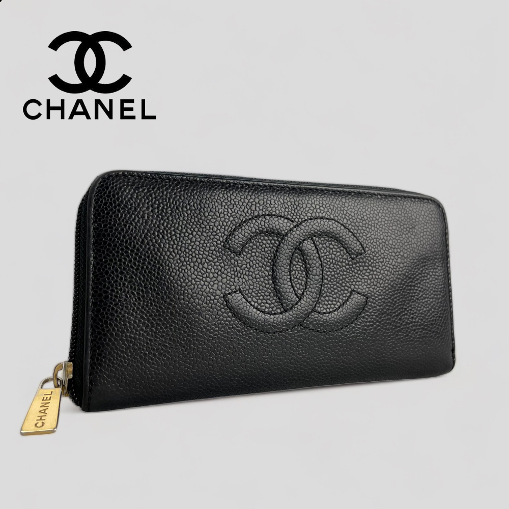 - ■CHANEL シャネル■ キャビアスキン ラウンドファスナー ウォレット長財布 ロングウォレット ブラック ココマーク