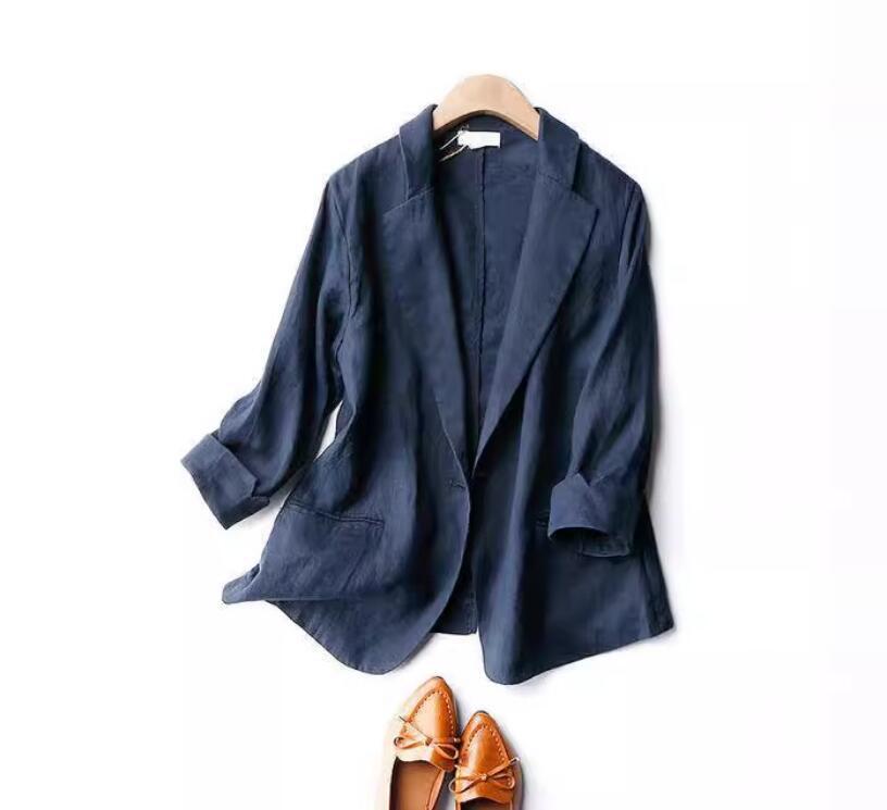 - 新入荷新品お色選択可ゆったり大きいサイズカジュアルレディース綿麻7分袖通勤ジャケットLサイズ(サイズ選べる)ブルー