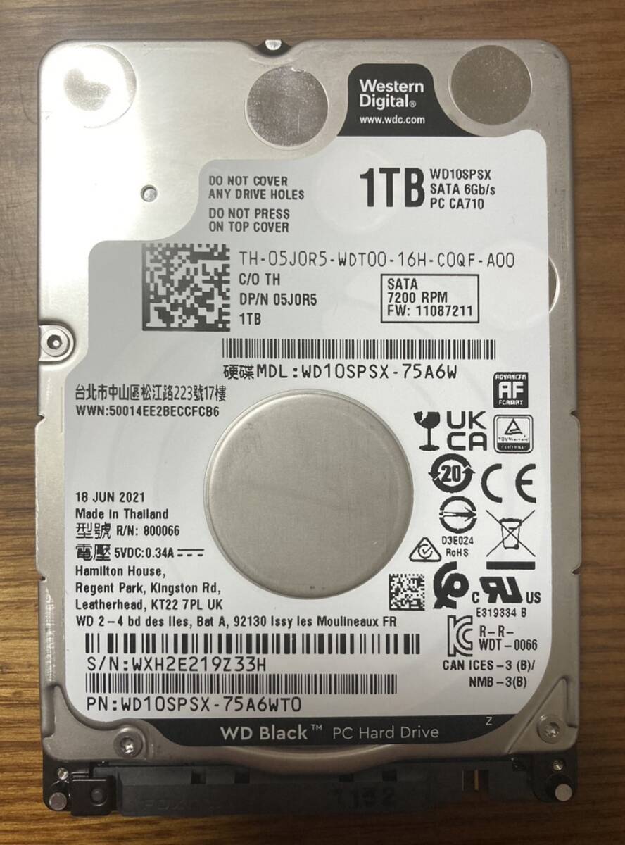 - 【使用時間:小】Western Digital ウェスタンデジタル WD Black WD10SPSX 2.5インチ HDD 1TB(高パフォーマンスHDD/使用時間:10時間未満)