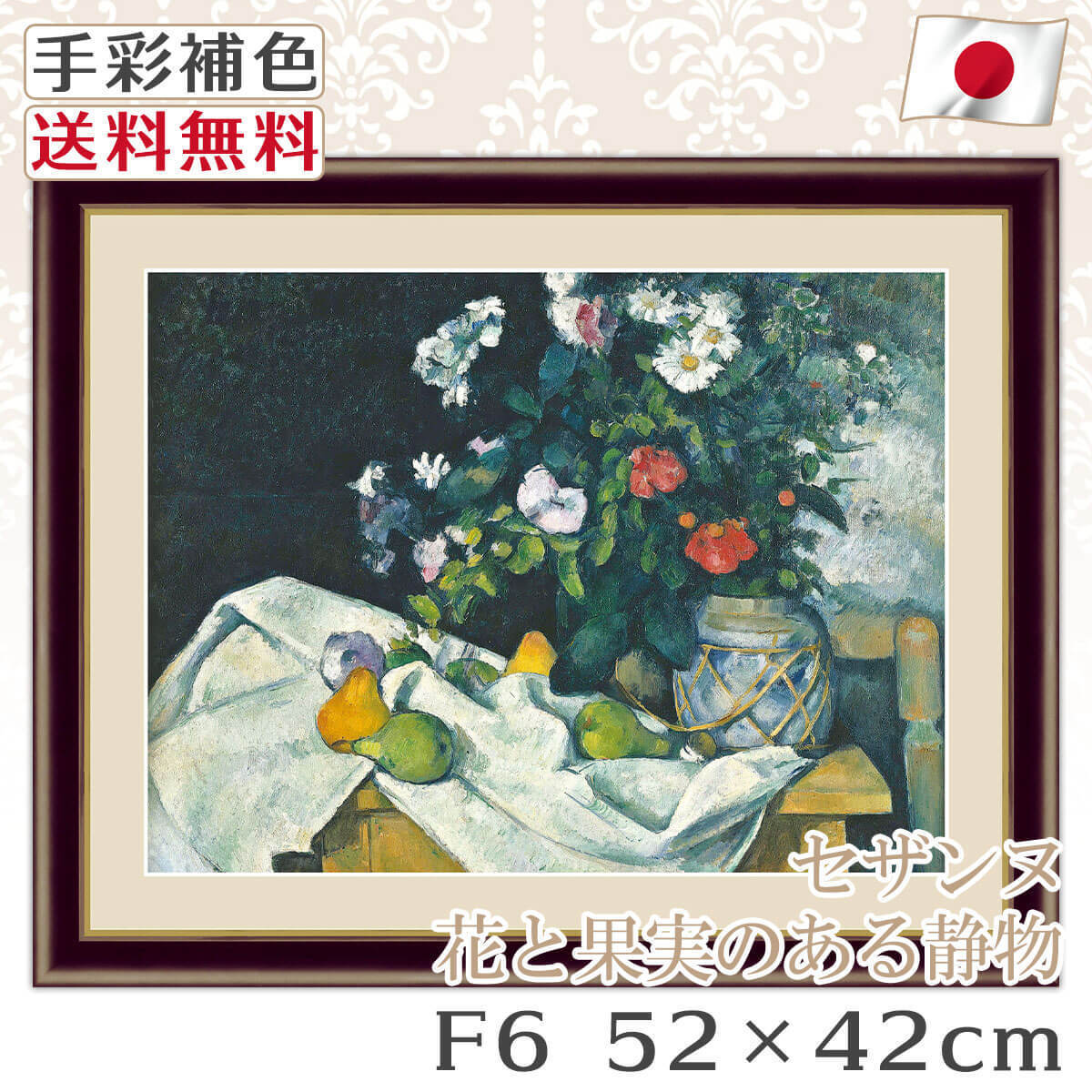 世界の 名画 洋画 額絵 ポール・セザンヌ 『 花と果実のある静物 』