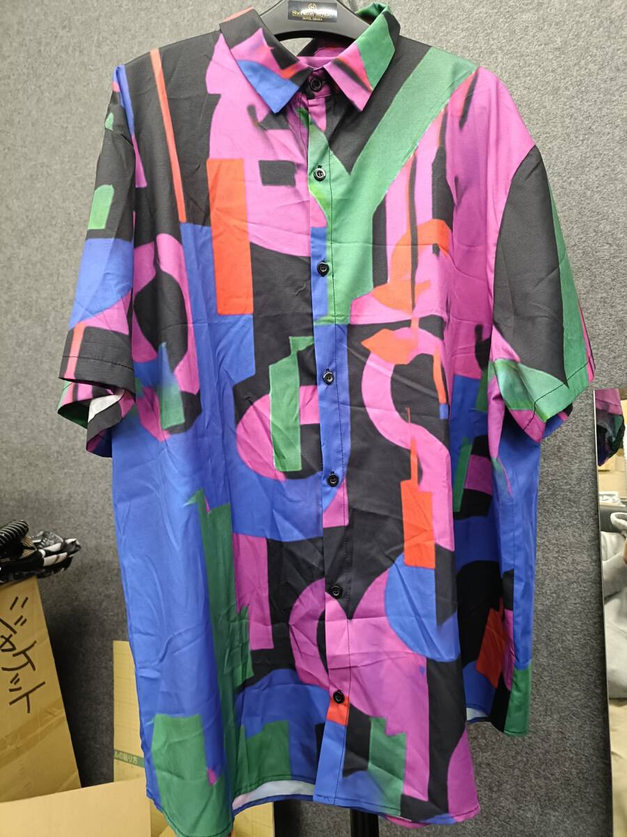- ★古着 レトロ ヴィンテージ 半袖シャツ マルチカラー カラフルシャツ size4XL
