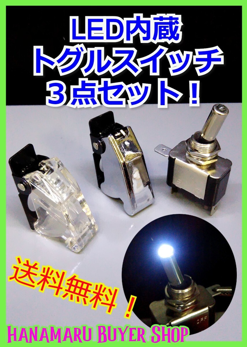 - 白LED内蔵トグルスイッチ カバー2種(クリア・シルバー)付き ON-OFF ミサイルスイッチ 3点セット新品送料無料