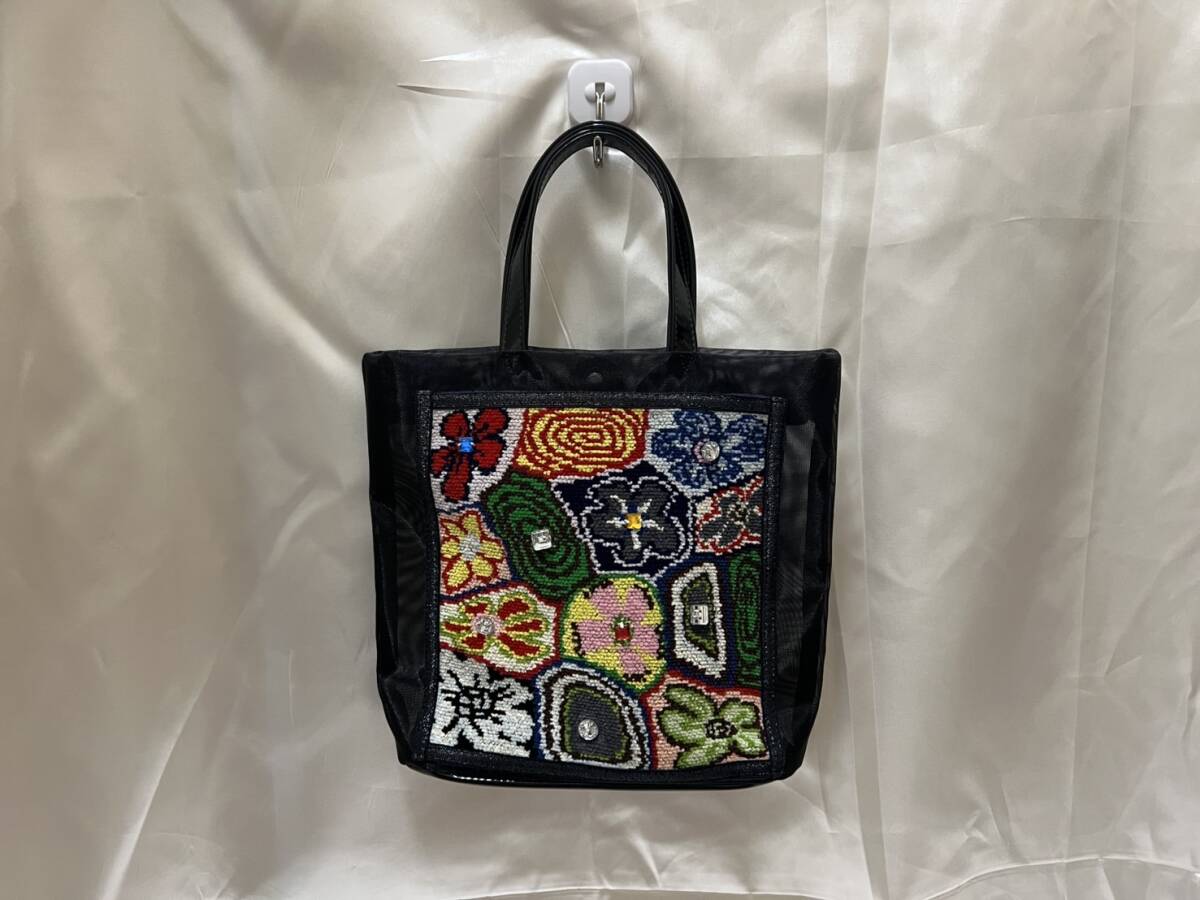 - B)日本製 ハンドバッグ 花柄 シースルー 黒 ブラック MADE IN JAPAN C46i