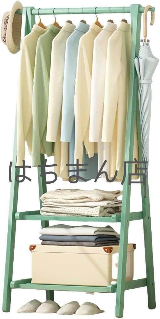 - ハンガーラック 木製 衣類収納ラック 洋服ラック 家庭 頑丈 大容量 幅66cm/86cm/116cm 洋服掛け コートハンガー (緑です,66*40*160cm)