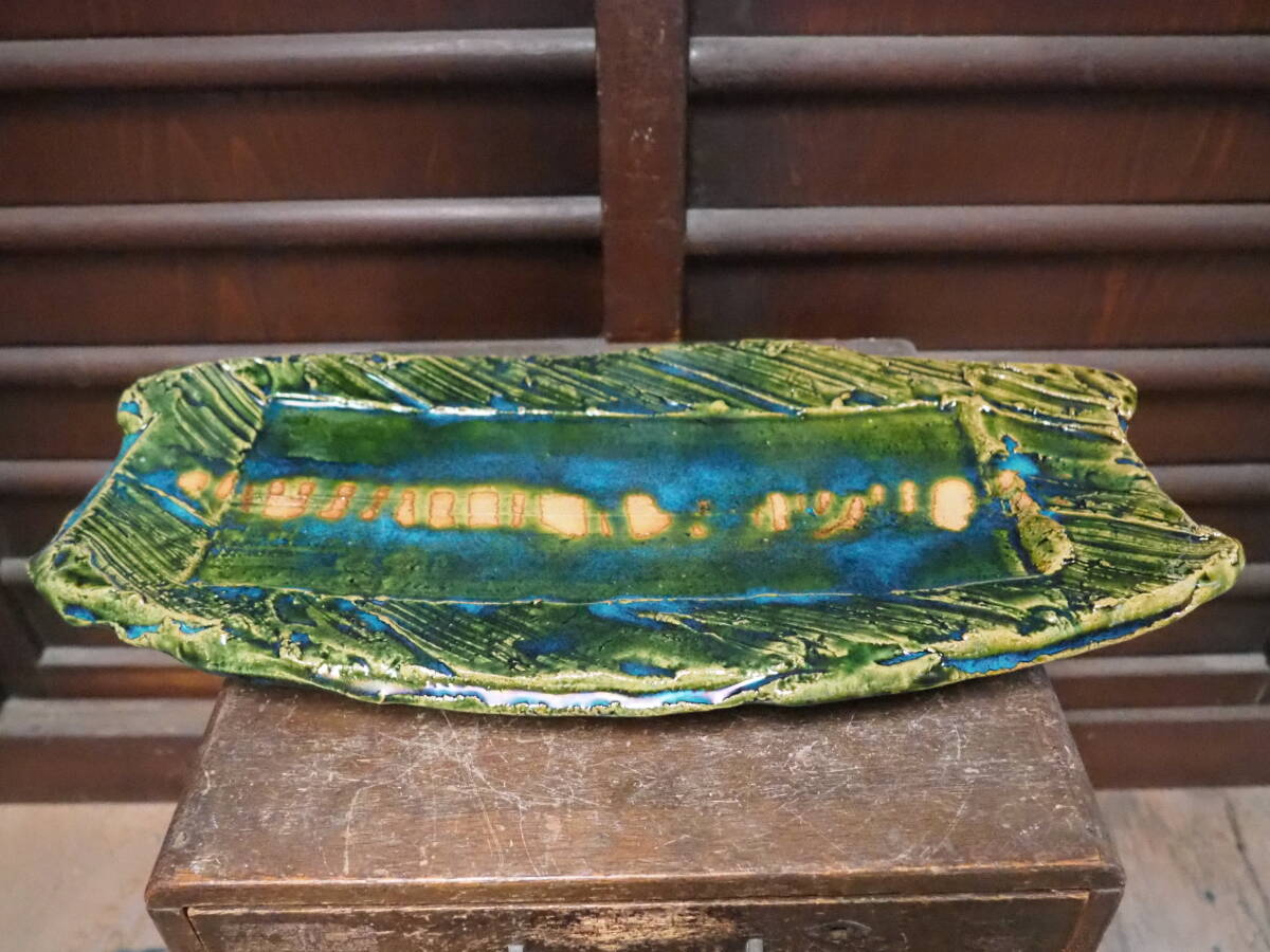- 【織部加飾俎板皿】陶製和食器割烹懐石料理お造り茶道華道古民家旅館美濃焼花入れ古道具アンティーク焼き物寿司刺身インテリア骨董古民具