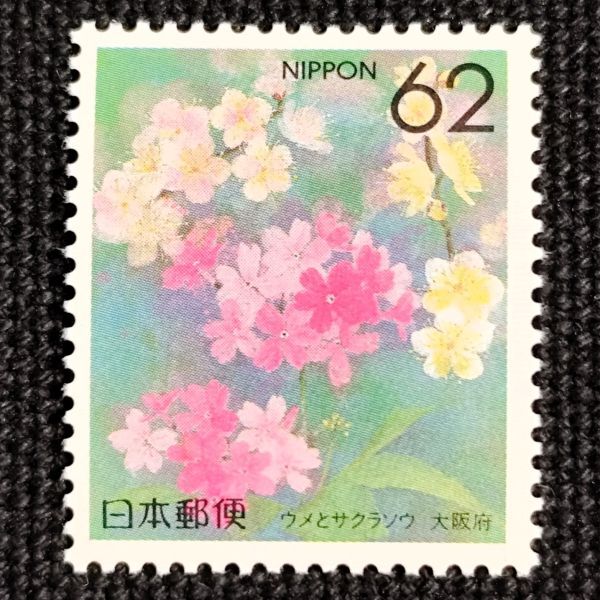 - [25040452] ふるさと切手【都道府県の花・大阪府】単片「ウメとサクラソウ」62円 1990年発行 美品