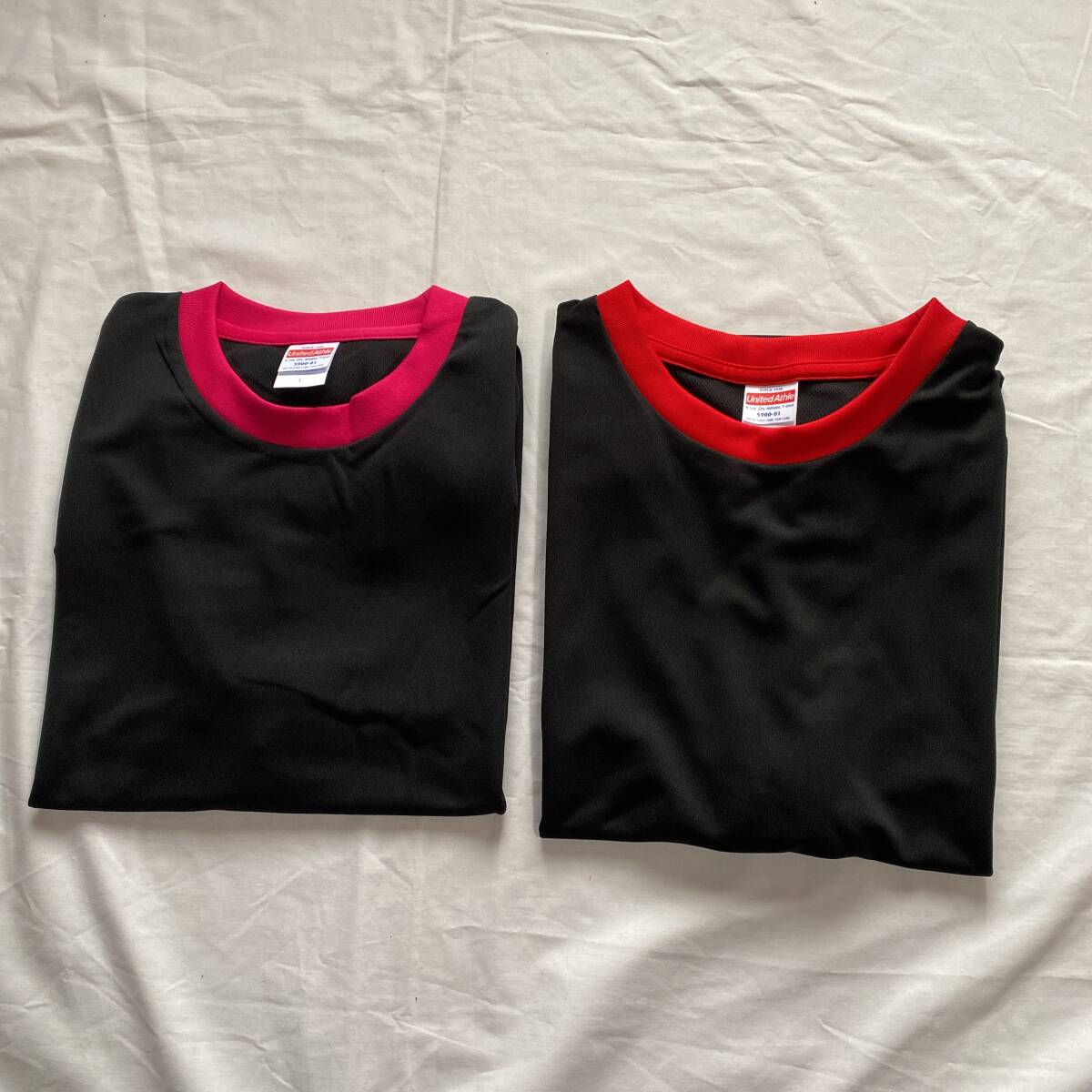 > 高級スポーツTシャツ 丸首 2着 Lサイズ ユナイテッドアスレー 黒系色 ドライ素材 UV機能 メッシュ加工◆◆未使用品