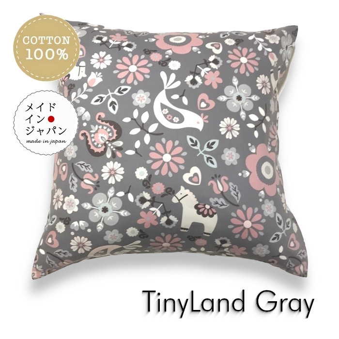> 大判クッションカバー タイニーランド グレー 北欧 ボタニカル柄 紺 60×60cm 綿100%