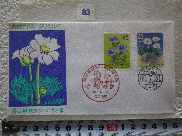 - FDC 高山植物 第5集 1985年 2貼2消 解説書有 松屋●83●