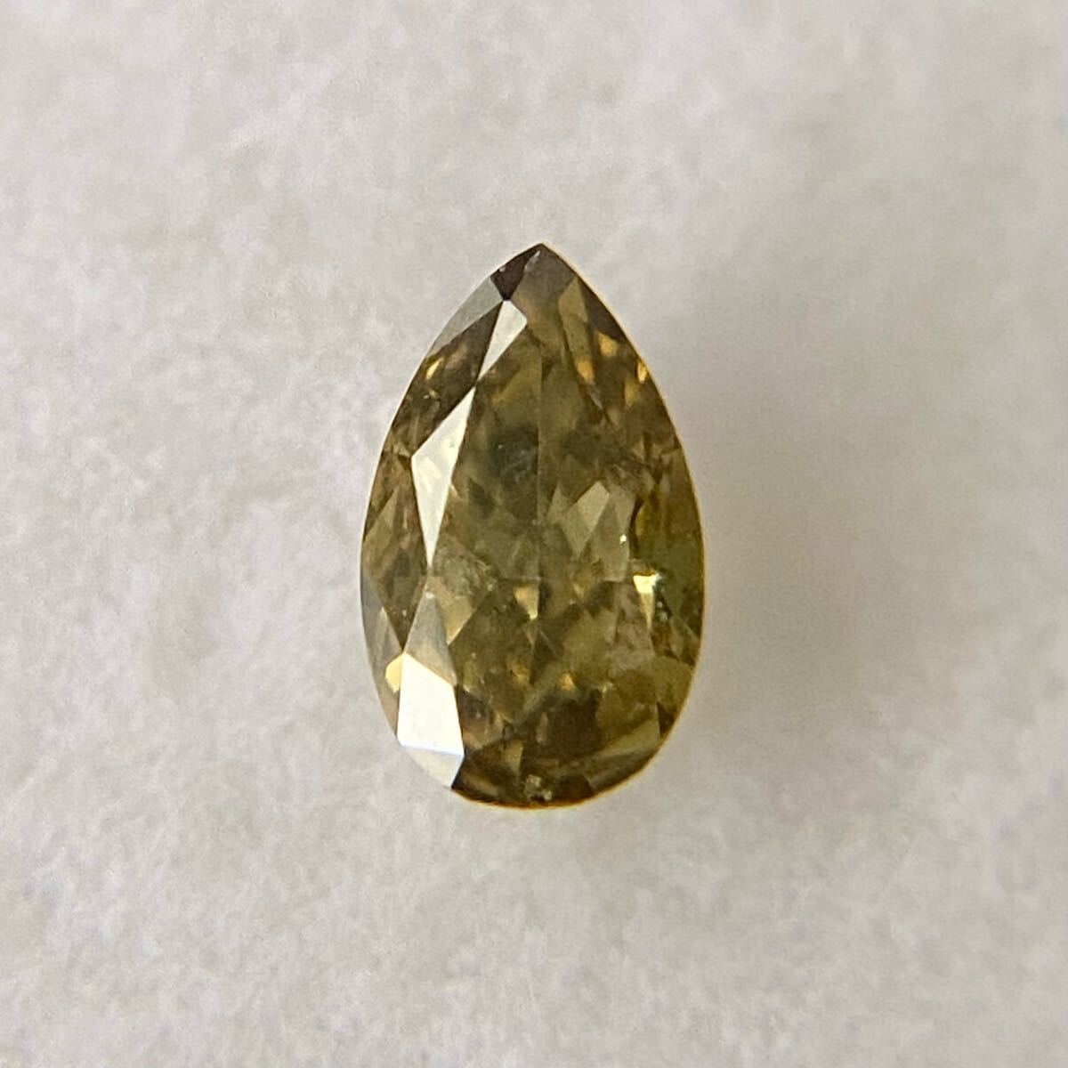 - オリーブグリーン ダイヤモンド ルース 0.143ct ペアシェイプカット