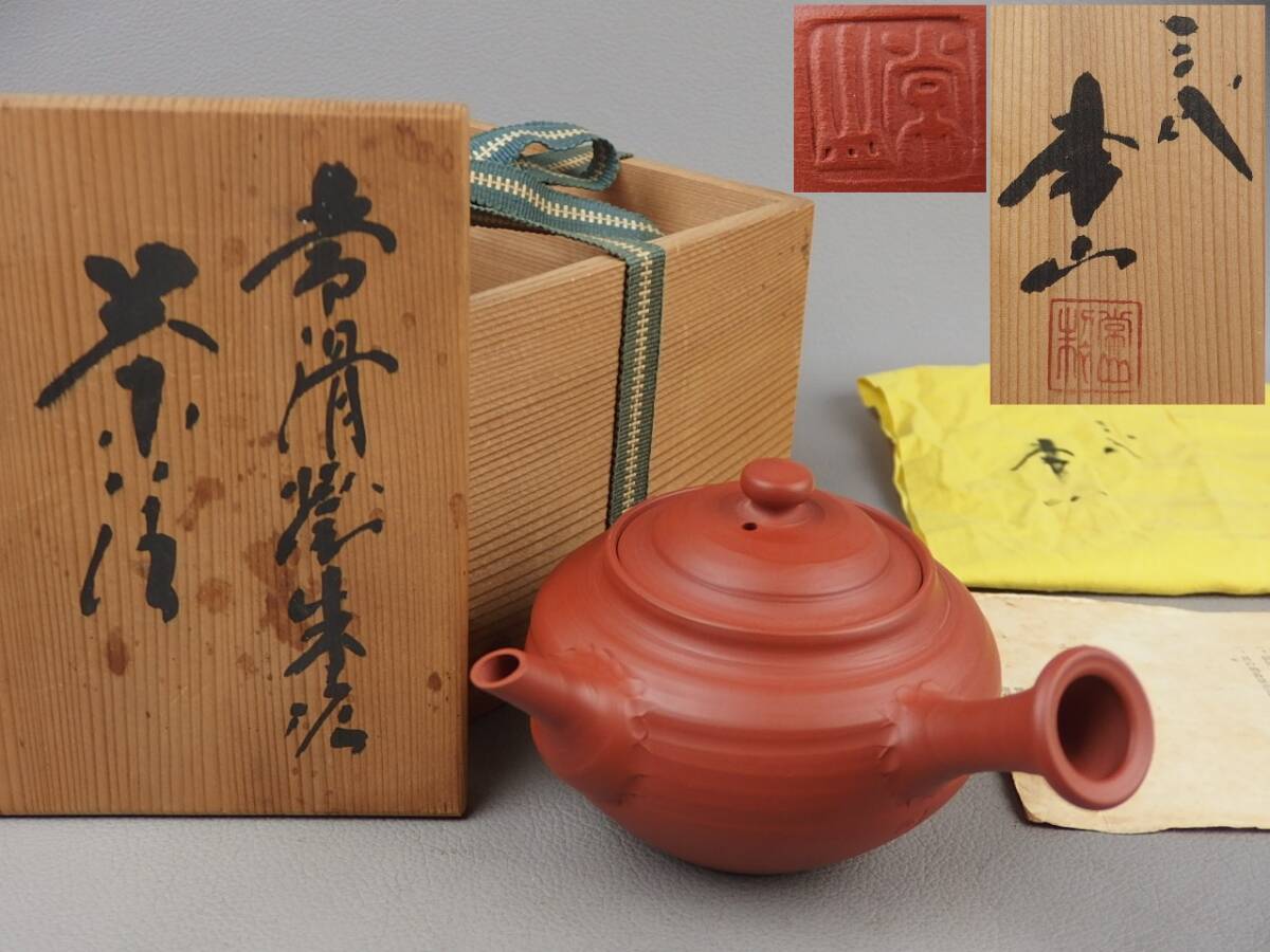- 【骨董・茶道具】★三代 山田常山★★常滑茶注 gi026syl.7 朱泥