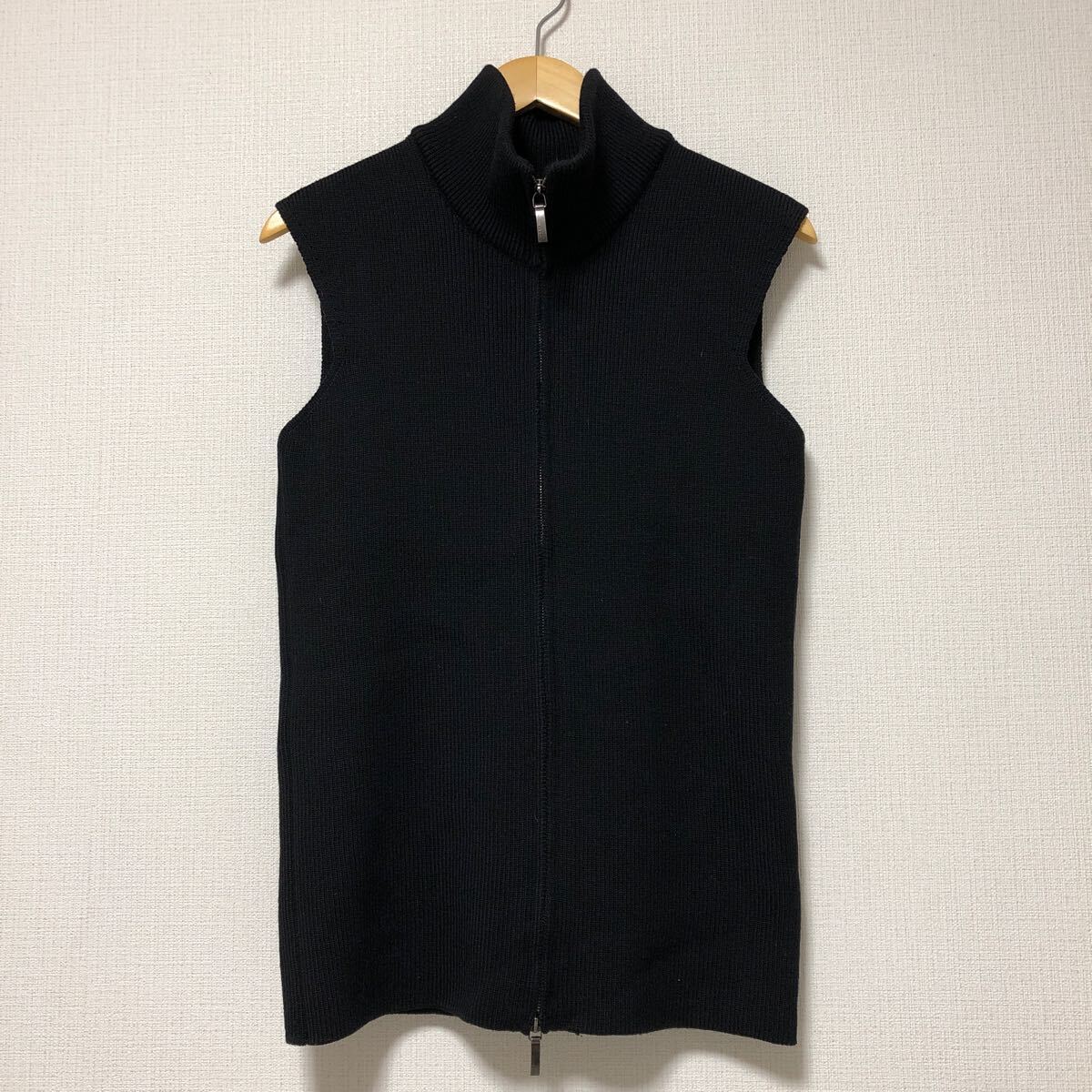 - (k) JIL SANDER ジルサンダー イタリア製 フルジップ ニットベスト 黒 ブラック ウール ダブルジップ サイズ38 ノースリーブ