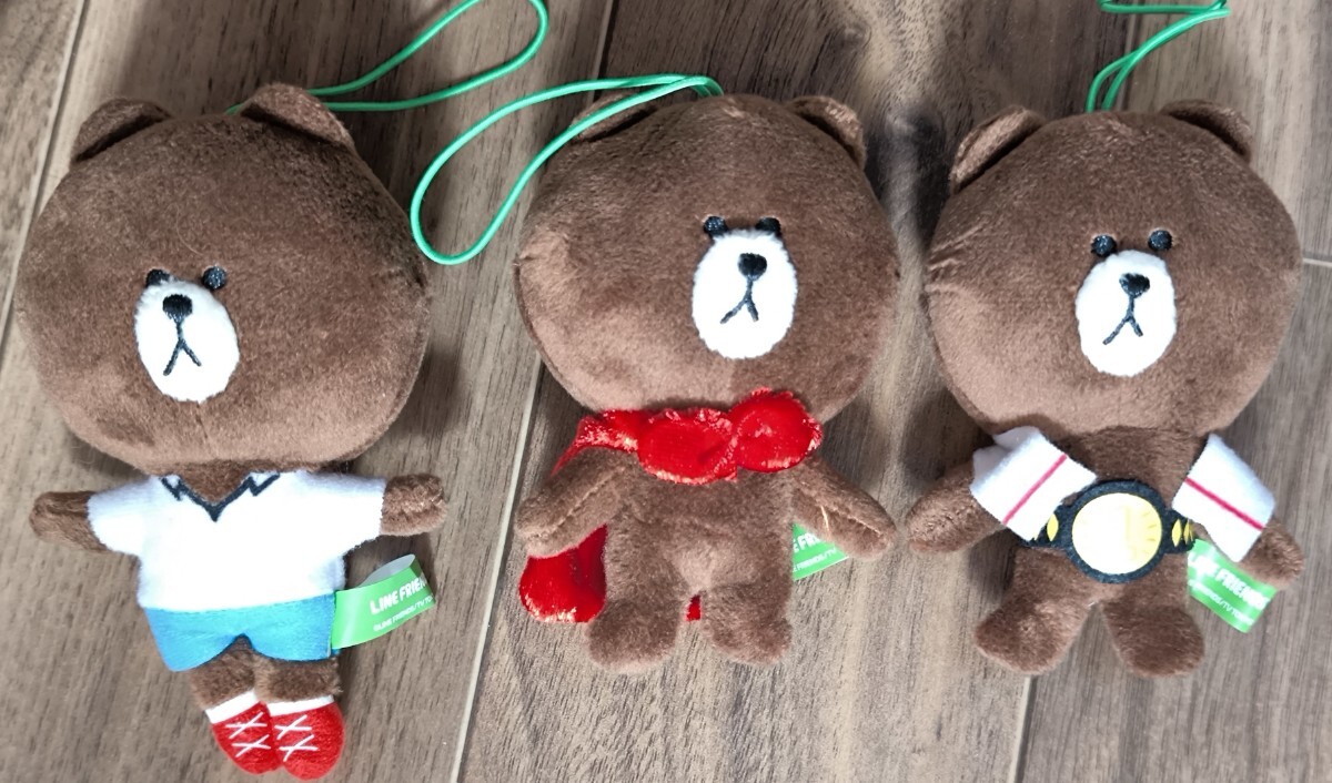 - 3個セット★ラインぬいぐるみ ブラウン ゴムひも付きマスコット LINE BROWNぬいぐるみ 未使用品