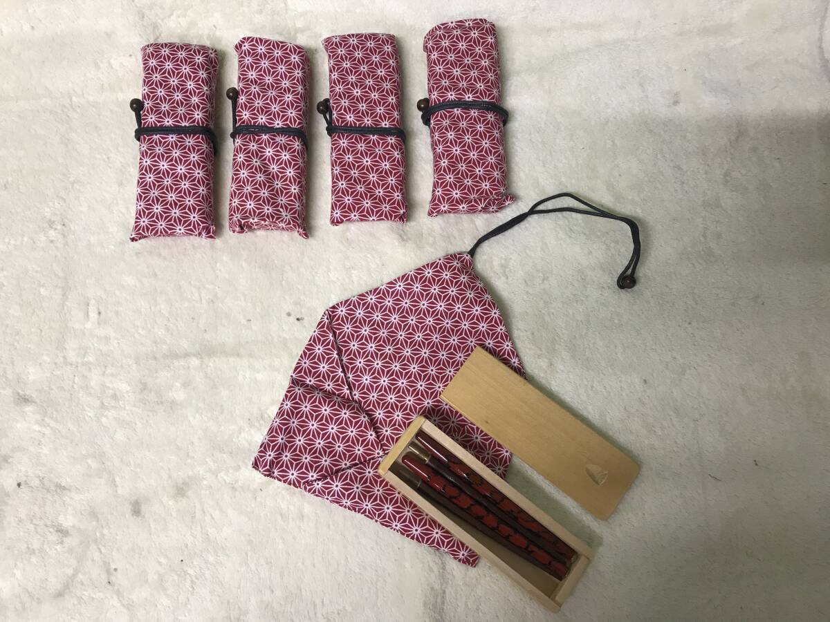 - 木箱入り お箸 組み立て式 マイ箸 コンパクト カトラリー 袋入り 5個セット 長さ約21cm アウトドア 旅行用に ①