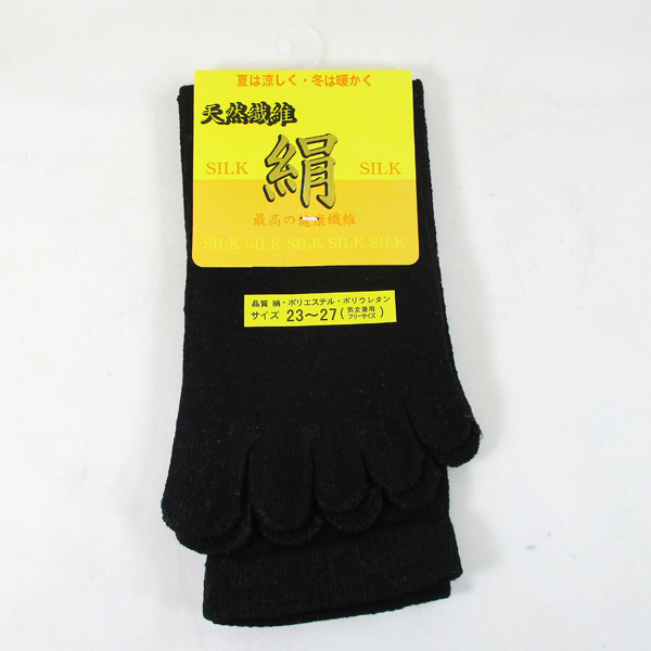 - 送料無料メール便 5本指 絹靴下 快適シルクソックス ブラックx1足