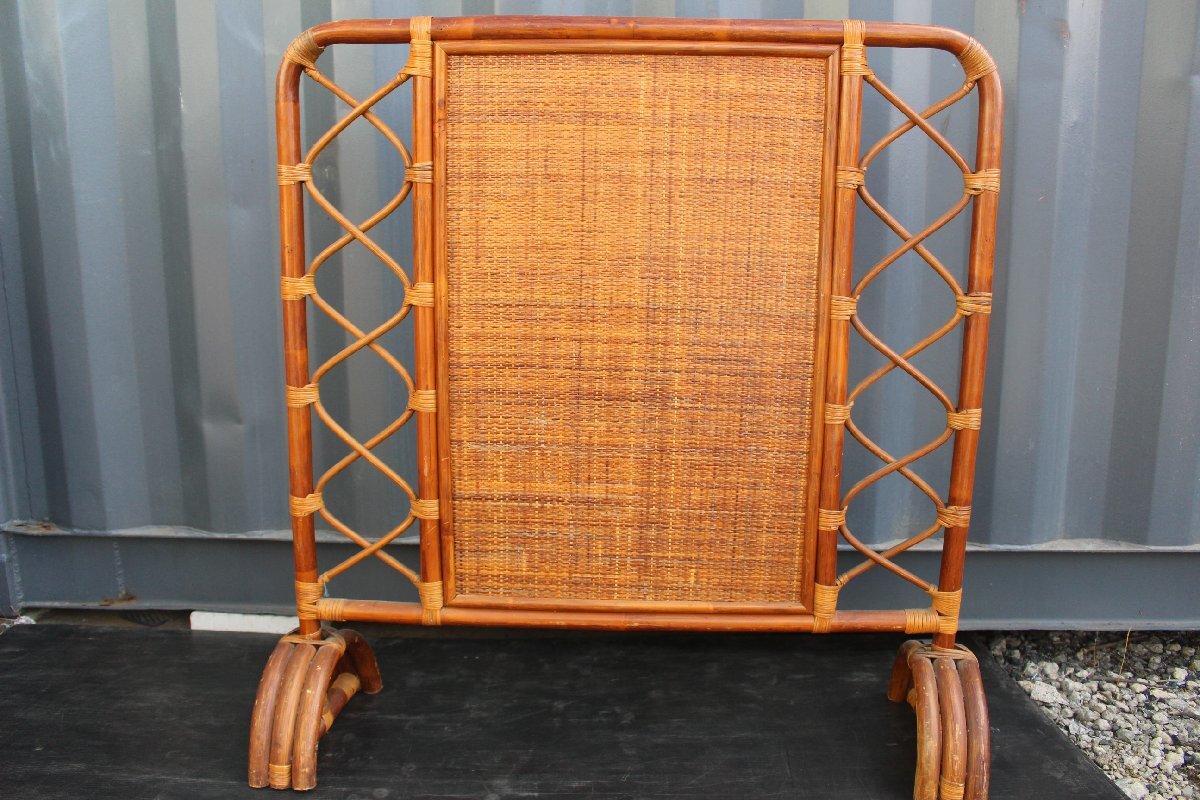 - ラタン 籐 パーティション 衝立 ついたて 幅104 高さ104cm 奥行31cm 仕切り 衝立 中古 レトロ 昭和 古道具