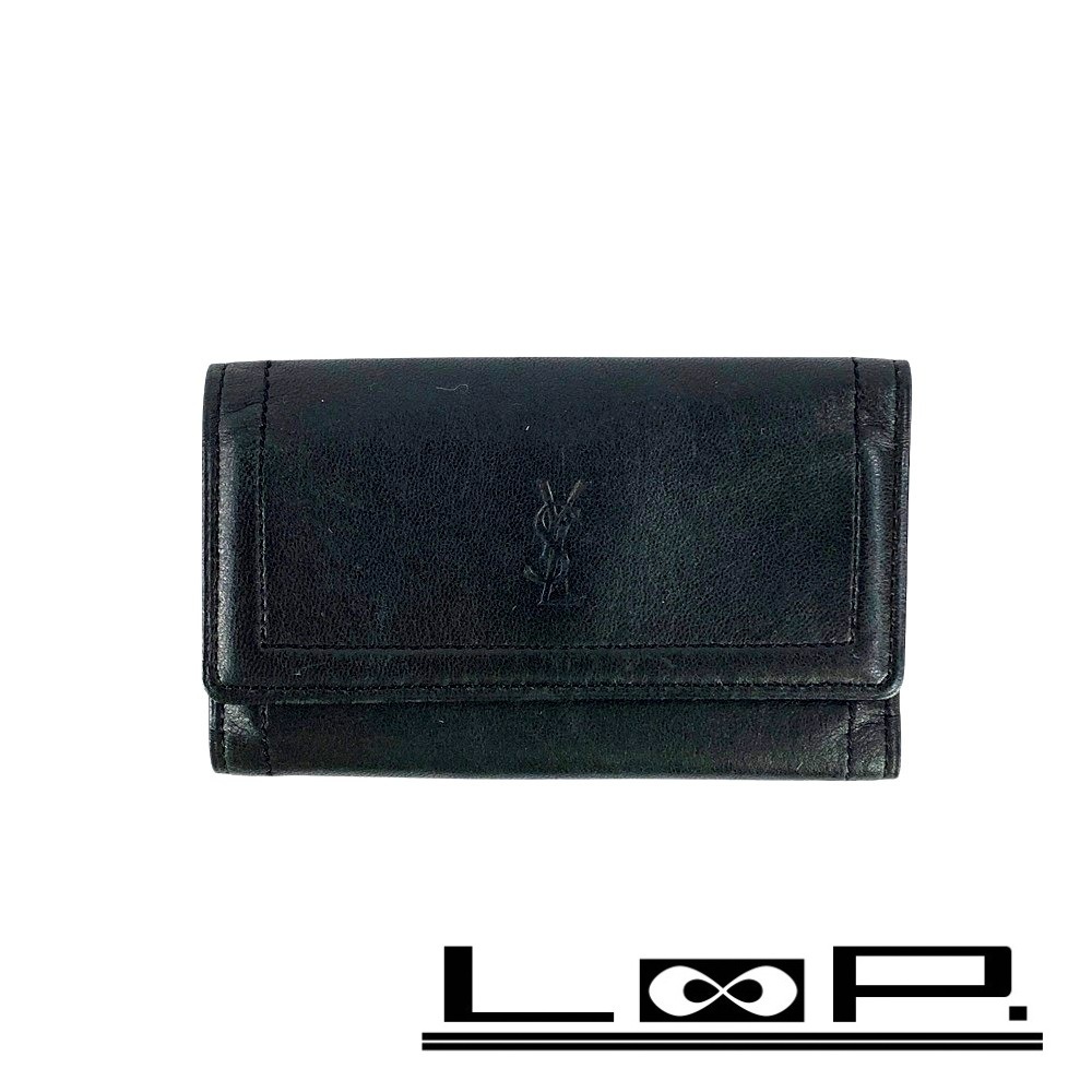 > ■美品■ヴィンテージ■ サンローラン 5連 キーケース ハート ラム スキン レザー ブラック 【326714】5