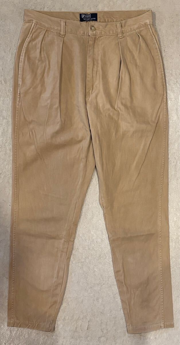 - 【USA製】90s POLO RALPH LAUREN ポロラルフローレン チノパン コットン ツータック パンツ メンズ W31 ベージュ アメリカ製 vintage 古着