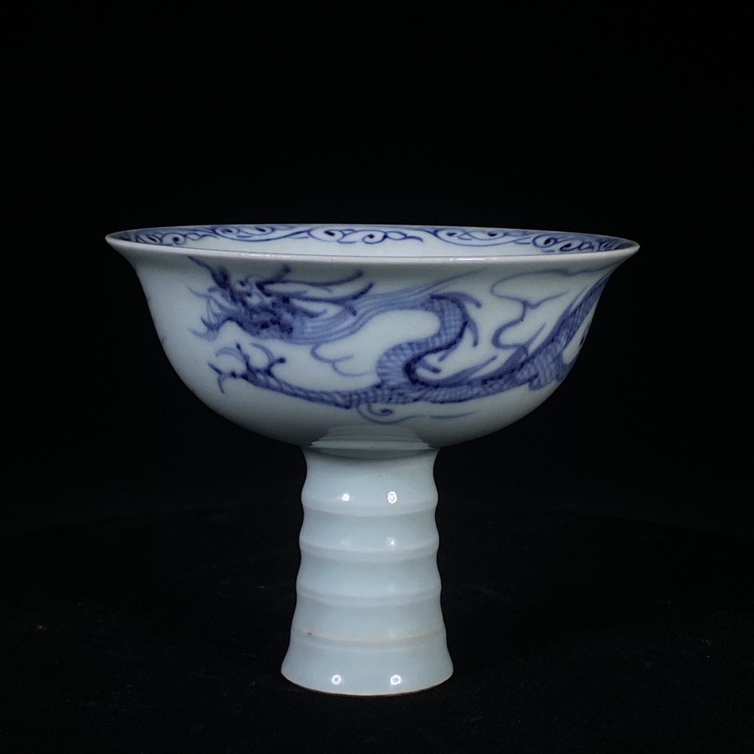 - 元 古陶磁器 青花龍紋 人物紋高足杯 茶杯 主人杯 賞物 極細工 東洋彫刻 骨董品 古賞物 中国古玩 中国古美術