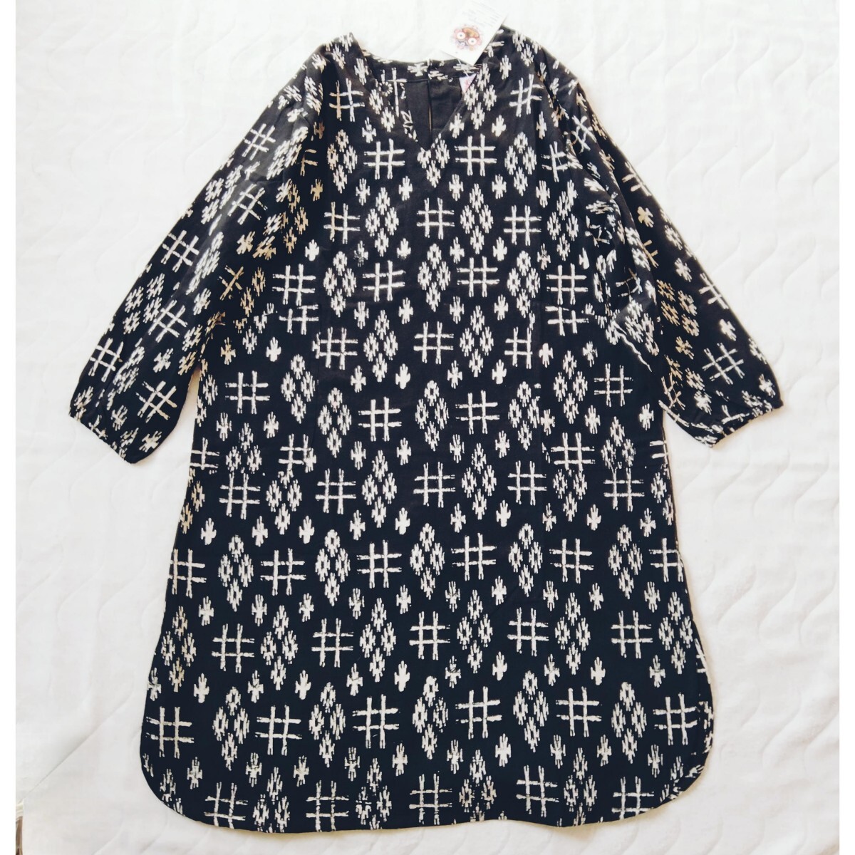 - 未使用*JAGANNATH*ジャガンナート*割烹着*かっぽう着*絣柄*エスニック柄*黒*エプロン*後ろボタン*Vネック*綿100%*インド製