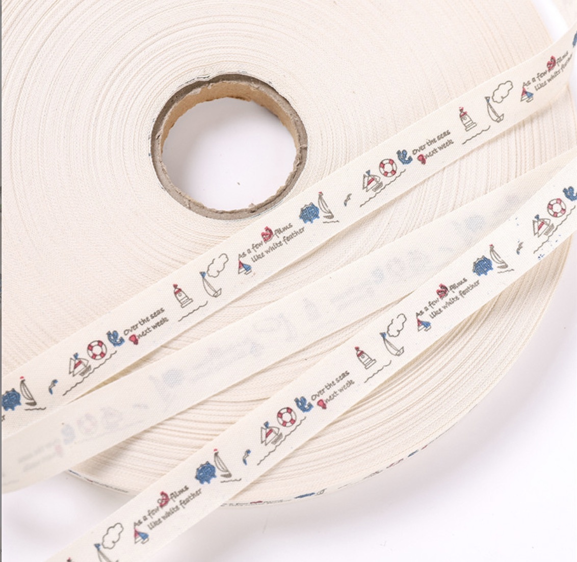 - 綿テープ スタンプ タグ リボン 幅1.5cx10m巻 DIY 手芸材料 生成り No.12-2