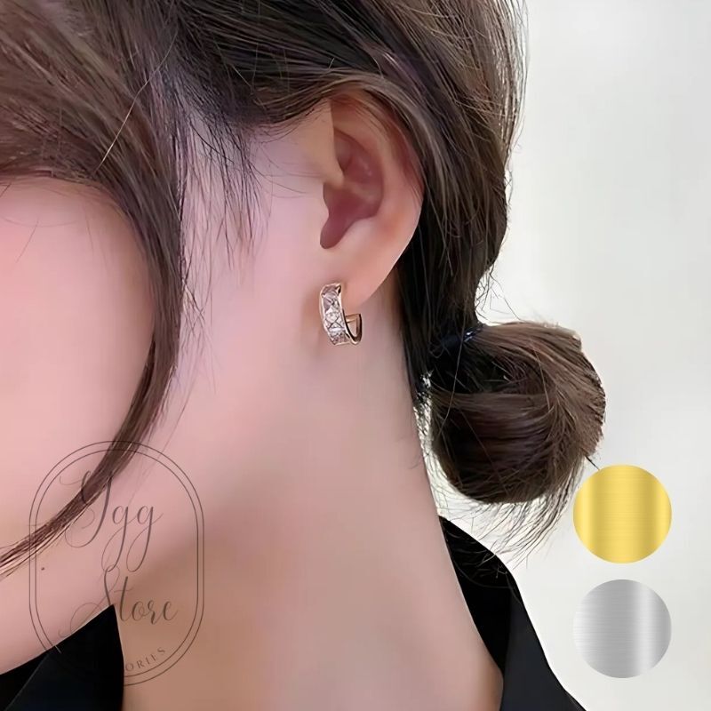 - フープピアス キャッチレス ワンタッチ ジルコニア ストーン キラキラ ミニ 両耳用 ペア 小さめ シルバー ゴールド きれいめ 男女兼用