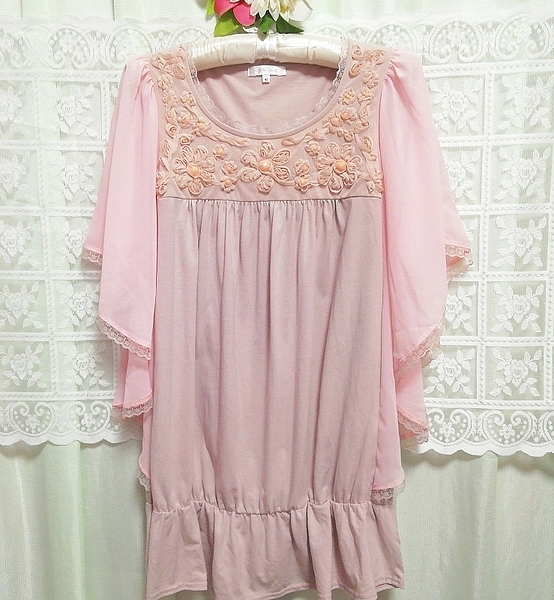 - 桜ピンクシフォンフレアお姫様チュニックネグリジェ Sakura pink chiffon flare princess tunic negligee