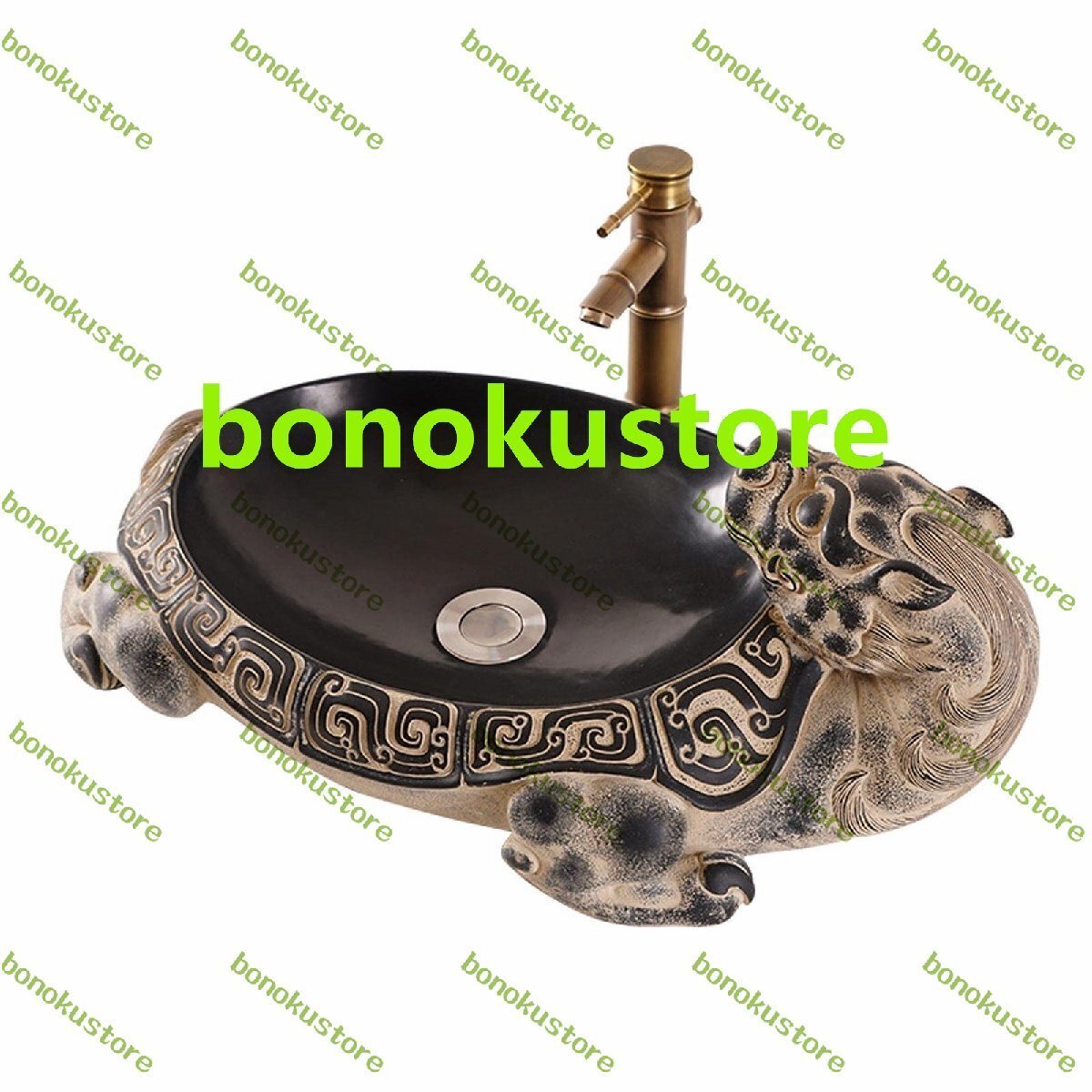 - 洗面化粧台 動物型洗面化粧台 創造性のあるバスルームシンク カウンター上洗面台 アート洗面台 ヴィンテージ ストーンカラー 蛇口付き