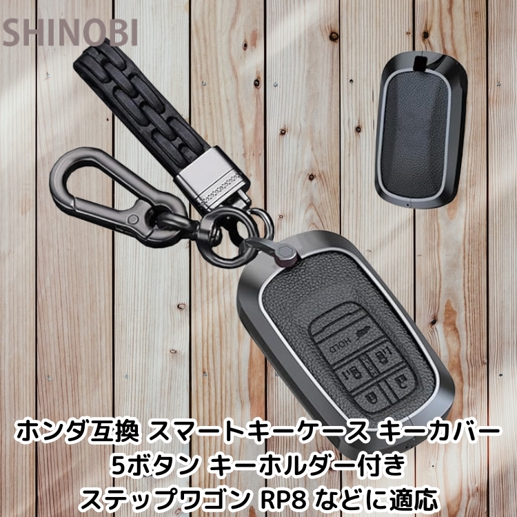 - ホンダ互換 スマートキーケース キーカバー 5ボタン キーホルダー付き ステップワゴン RP8 新型ステップワゴンスパーダ 等に適応 ブラック