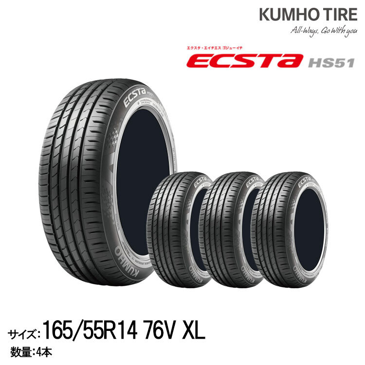 > クムホタイヤ ハイバランスコンフォートタイヤ/エクスタ HS51 【165/55R14】KUMHO ECSTA HS51 /4本セット