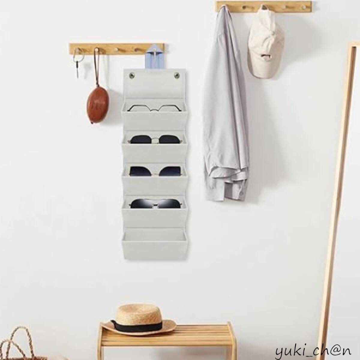 - メガネケース 眼鏡ケース サングラス収納 折りたたみ 収納ケース 5本収納可能 壁掛け収納 持ち運び便利 省スペース 保護