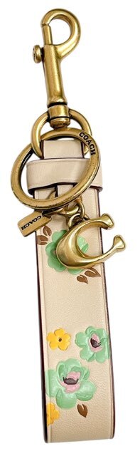> コーチ キーリング ループ バッグチャーム フローラル プリント ストラップ 花柄 ベージュ キーホルダー COACH 【中古】