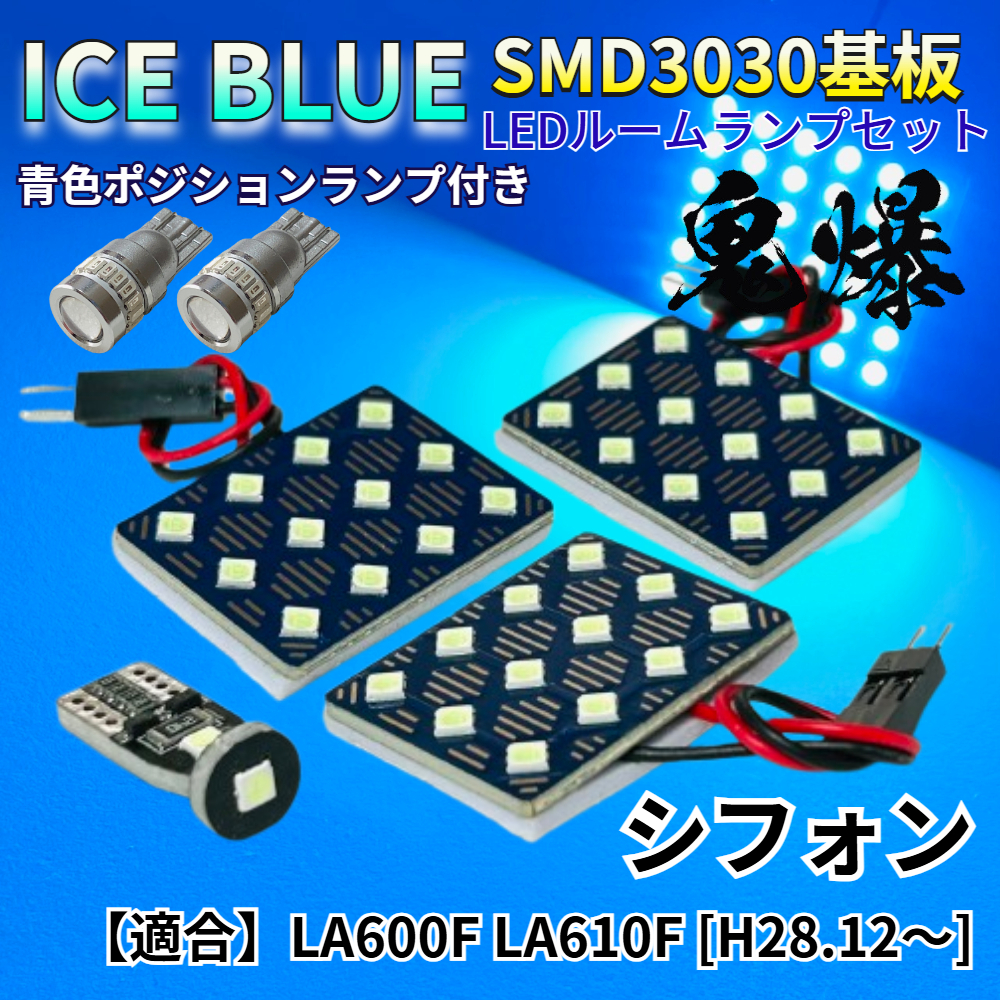 > 【アイスブルー】シフォン LA600F LA610F 鬼爆基板 3030SMD LED ルームランプ スモールランプ セット 車内灯 室内灯 パーツ アクセサリ