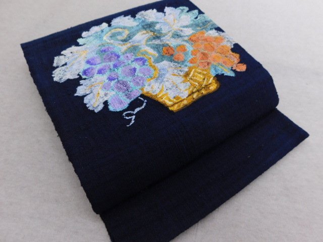 - 〔楽布特選〕P33380 ざっくり 紬の 手織り 名古屋帯 オークション c