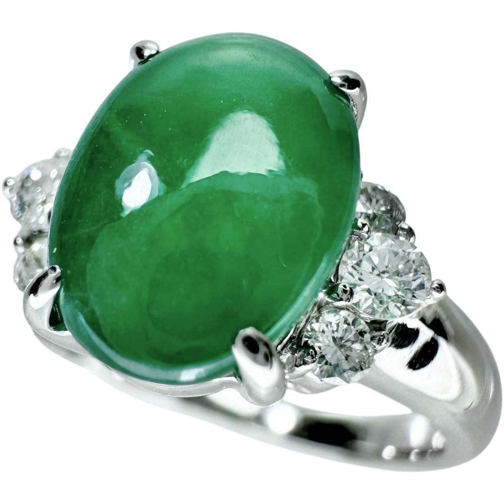 - 13号 ヒスイ 3.04ct ダイヤモンド 0.23ct リング・指輪 Pt900プラチナ 5.9g レディース