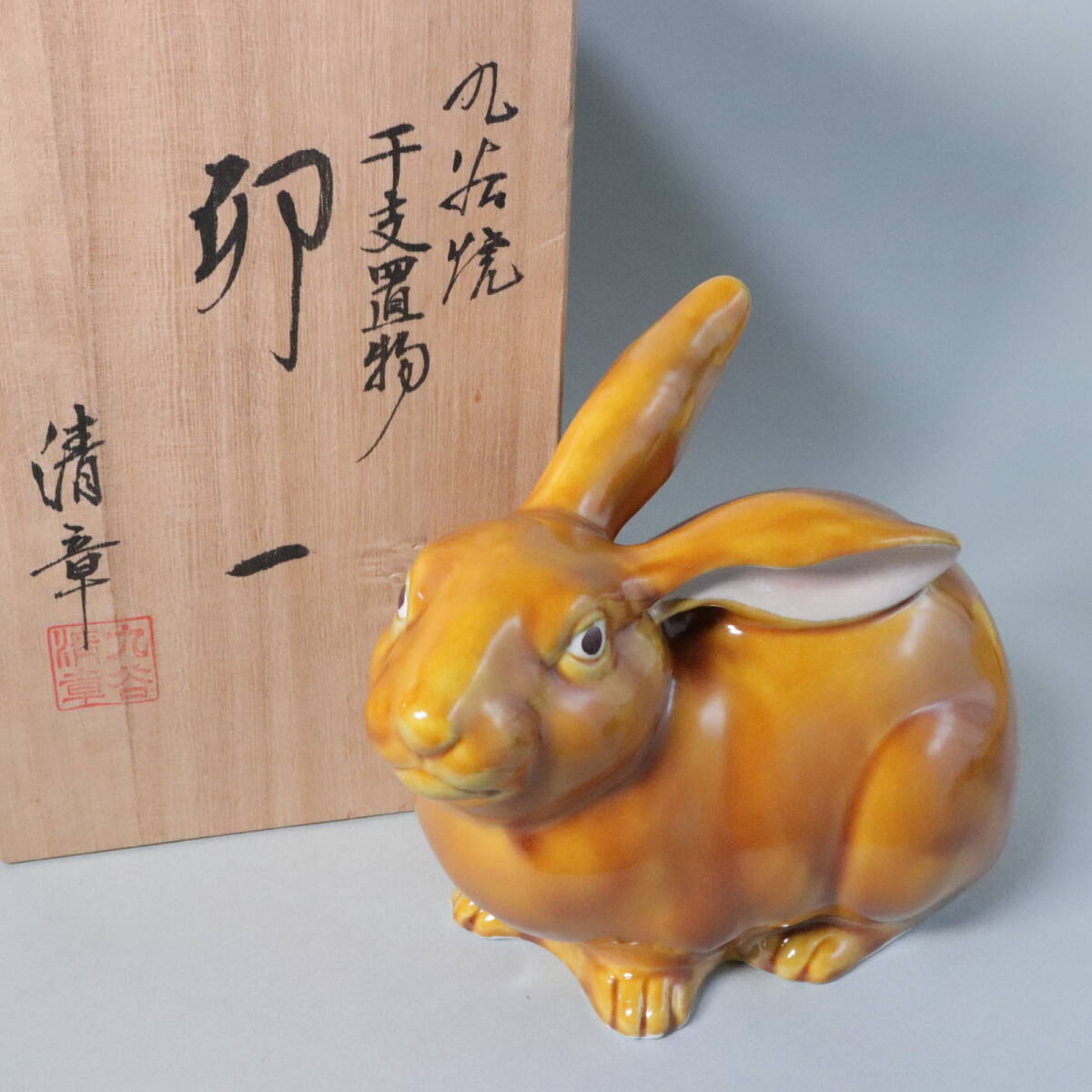 - 九谷焼 干支置物 糠川清章 作 『兎』 十二支卯 共箱 卯年 共箱 共栞 F0407C4