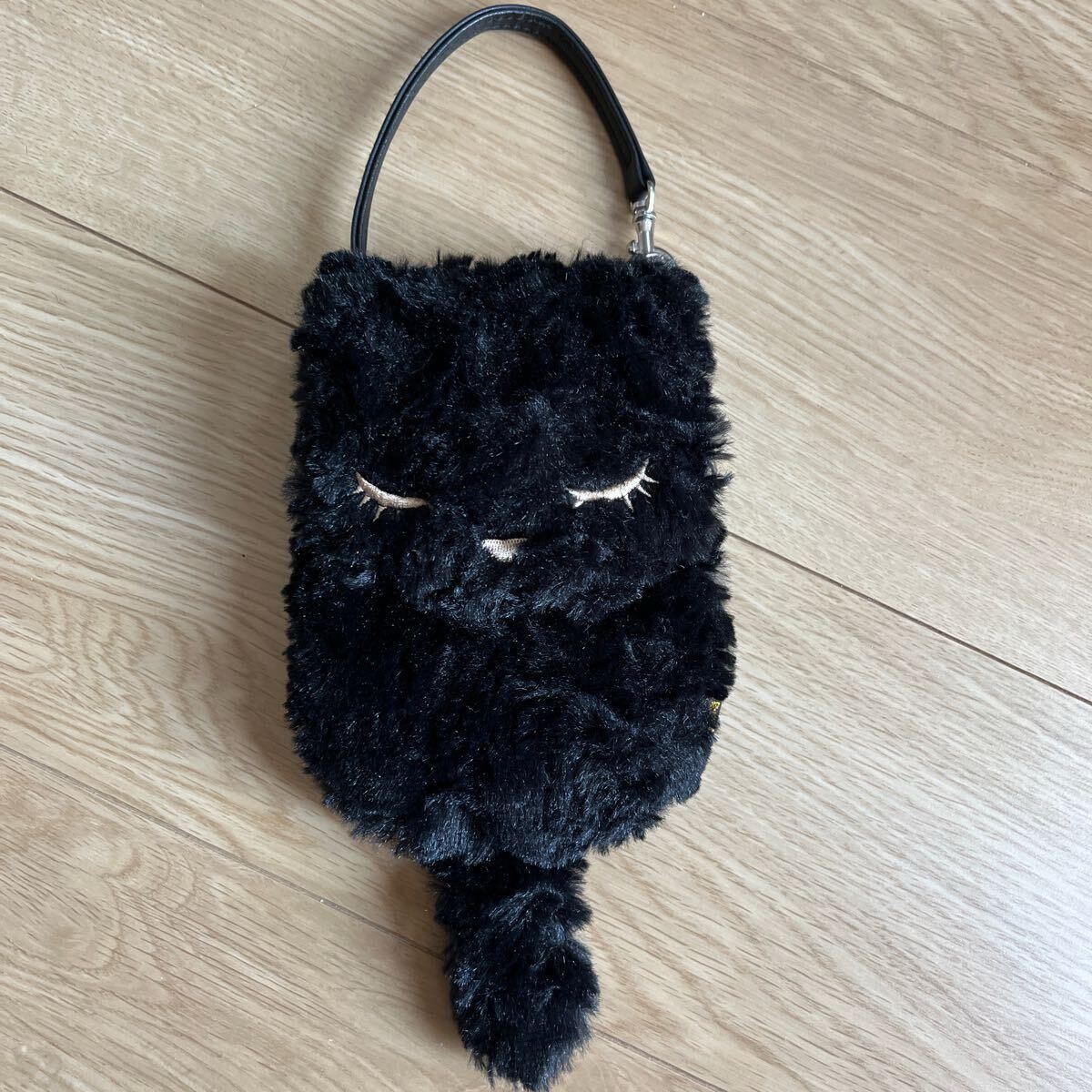 - おすましプーちゃん 黒 フェイクファー スマホケース ミニポーチ ぷーちゃん 黒猫