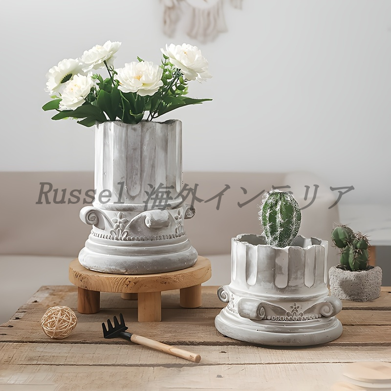 - フラワー ポット 古代ローマ風 柱 ヨーロッパ調 ヴィンテージ調 おしゃれ かわいい インテリア 北欧 鉢 植木鉢 観葉植物 屋内 屋外