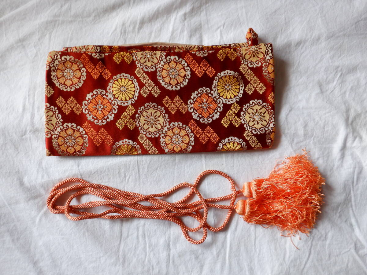 - 拵え用 脇差袋 光沢のあるオレンジ色 人絹製 優良品 未使用品