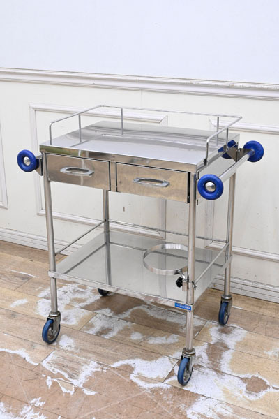 - FY01 ステンレス製 厨房 医療用 ステンレスワゴン 引出付き テーブル サイドテーブル シェルフ キャスター付