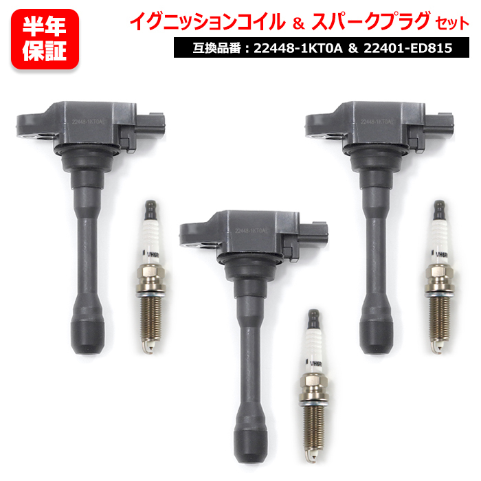 > 日産 ノート E12 NE12 イリジウム スパークプラグ & イグニッションコイル 3セット プラグ 22401-ED815 コイル 22448-1KT0A 点火プラグ