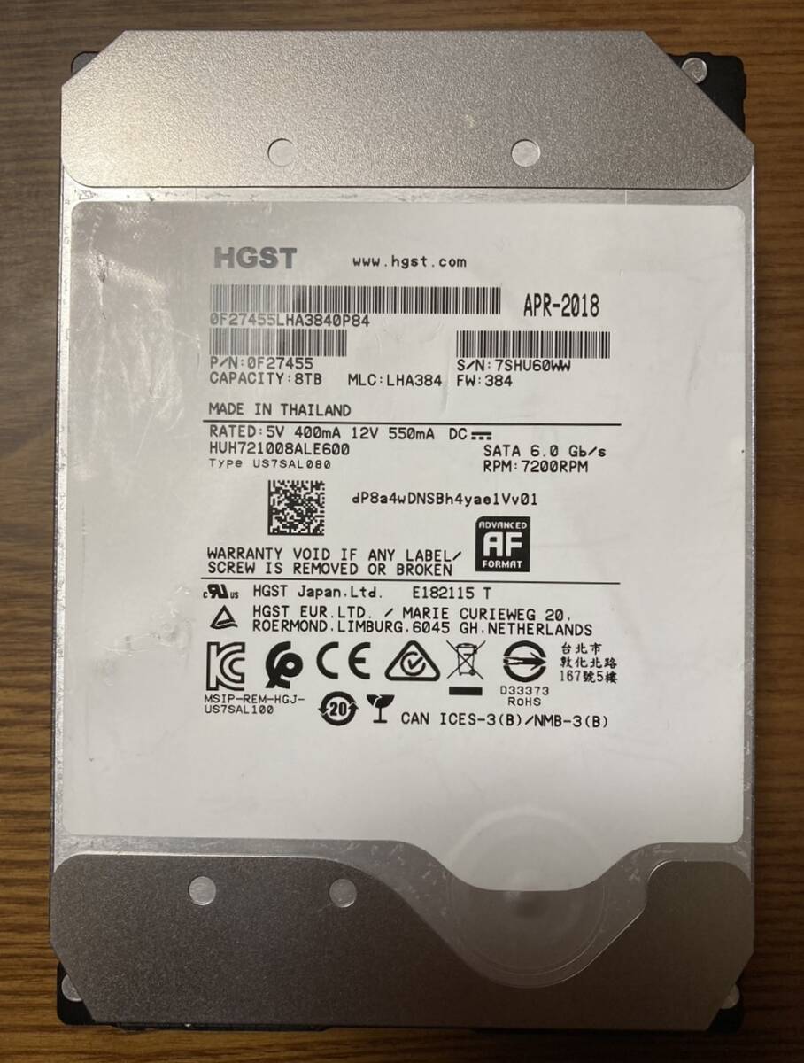 > 【状態◎】日立 Hitachi/HGST Ultrastar He10 HUH721008ALE600 3.5インチ HDD 8TB(データセンター向け高信頼HDD/変換ケーブル付属)