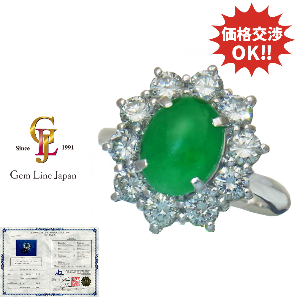 - 美品 鑑付 ヒスイ 2.23ct ダイヤモンド 1.40ct Pt900 リング